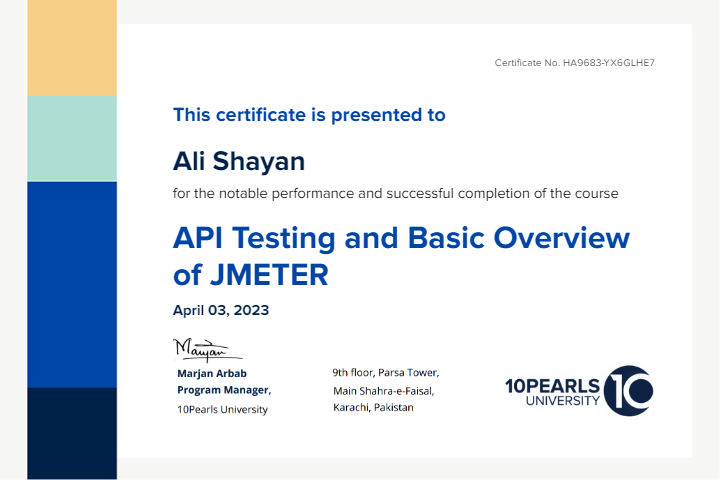successfully completed the course API Testing and Basic Overview of JMETER on