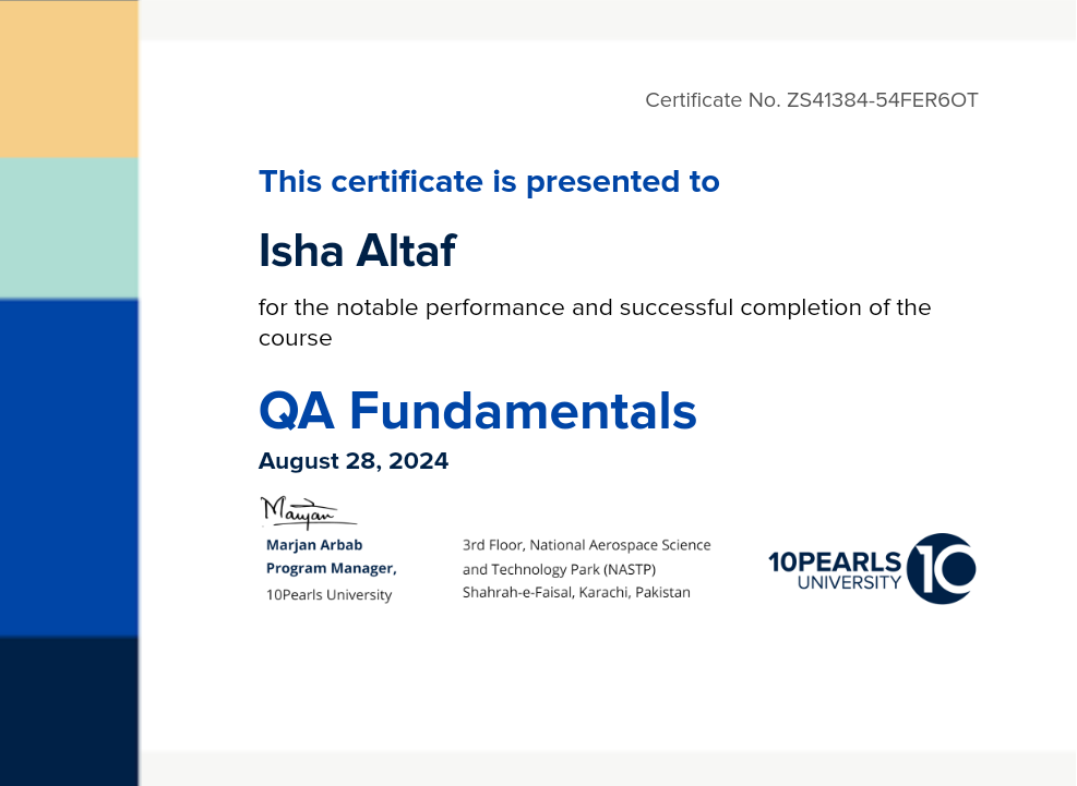 August 28, 2024 as taught by Bisma Latif on 10Pearls University.