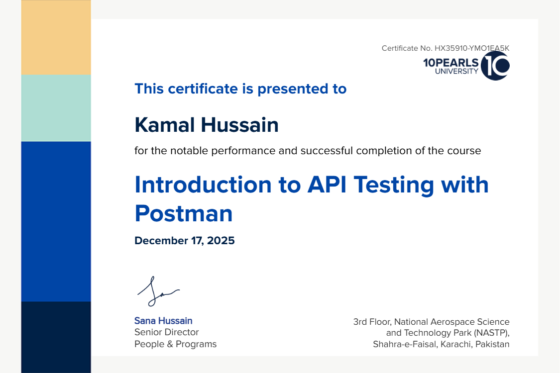 successfully completed the course Introduction to API Testing with Postman on