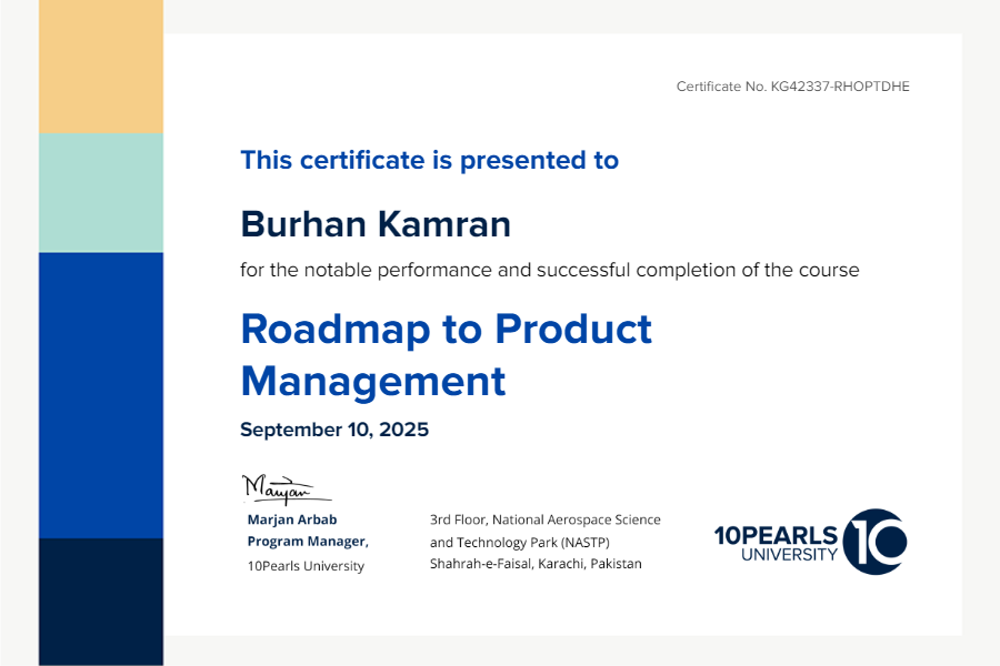 This certificate above verifies that Burhan Kamran