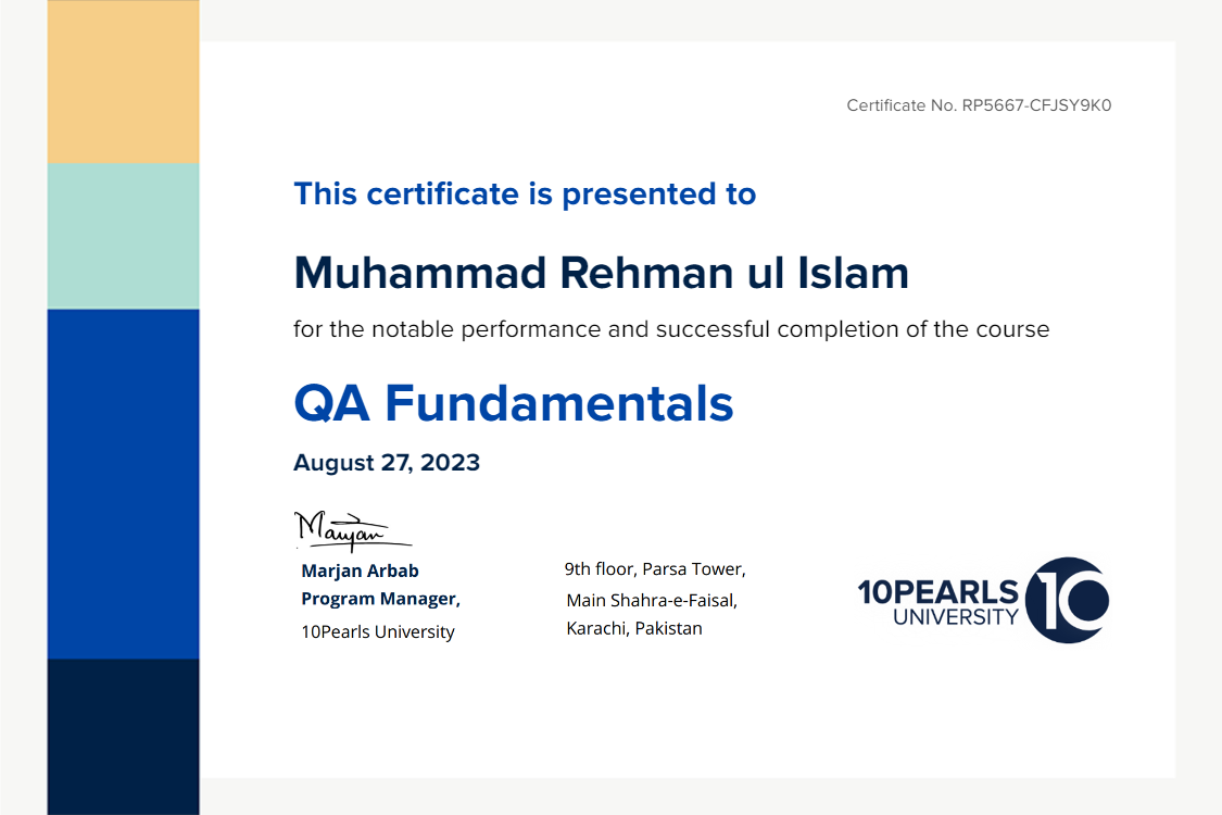 August 27, 2023 as taught by Bisma Latif on 10Pearls University.
