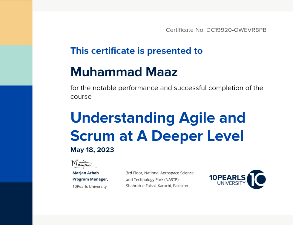 successfully completed the course Understanding Agile and Scrum at A Deeper Level on