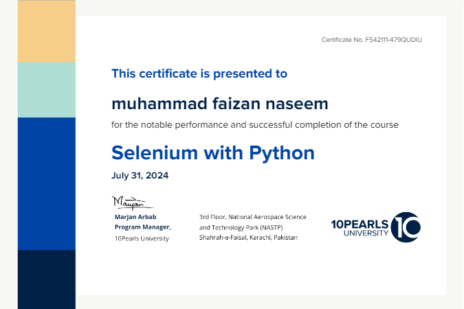 successfully completed the course Selenium with Python on