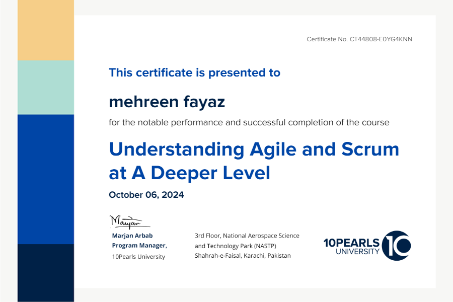 October 06, 2024 as taught by Sanam Khan on 10Pearls University.